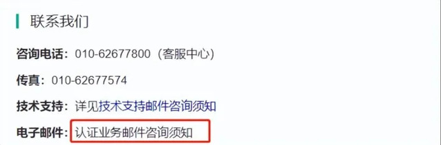 ② 首页拉到最底部,点击“认证业务邮件咨询须知”