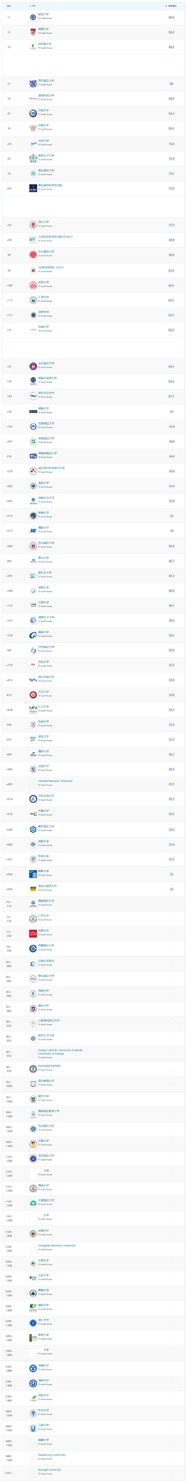 在此次上榜的103所韩国大学中,有15所大学入围亚洲TOP100,46所大学入围亚洲TOP500。