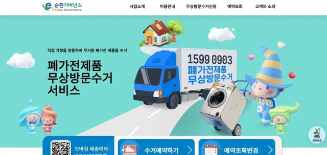 4.处理大型家电时,可使用“废弃家电无偿访问收集服务”,网站搜索폐가전방문수거배출예약시스템(网址:https://www.15990903.or.kr),进入E-순환거버넌스官网,填好申请信息,就能免费预约上门回收了。