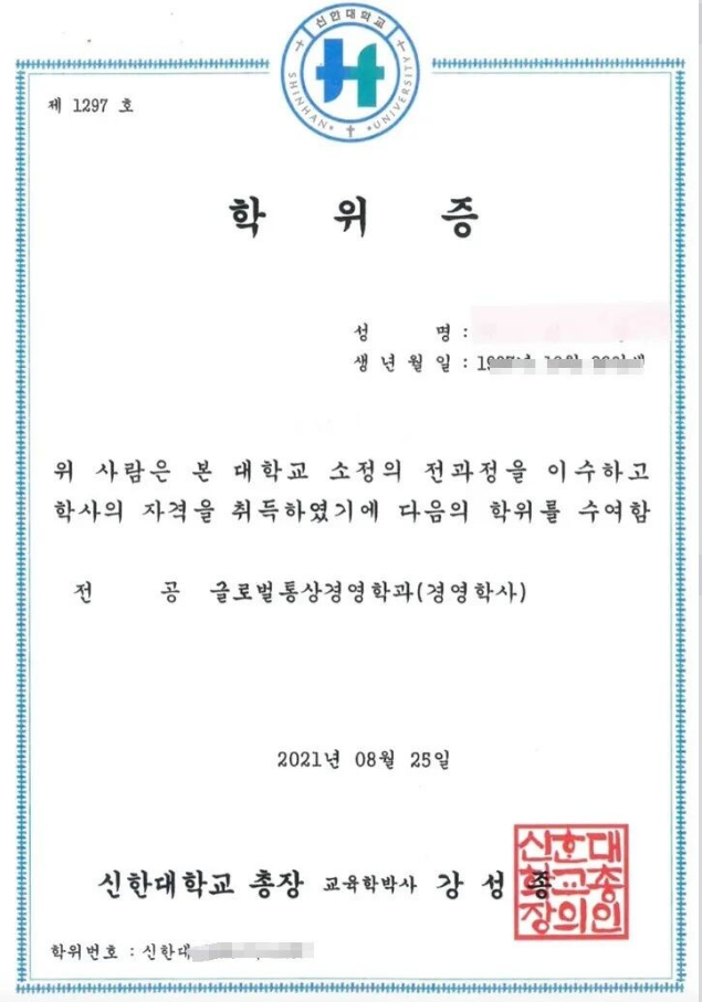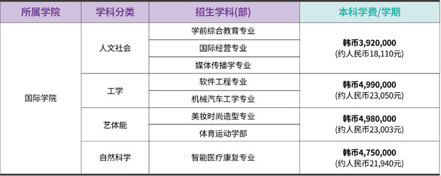 专业要求:所学专业与信韩大学申请专业一致或相似(国际经营与体育运动专业支持跨专业申请)