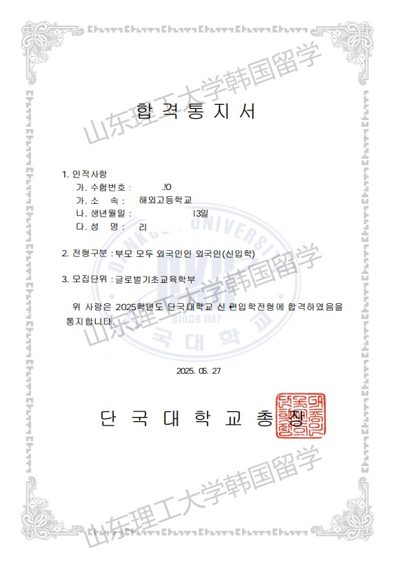 近日,山东理工大学韩国留学预科班捷报频传:在2025年檀国大学首批本科秋季入学申请中,我校所有申请学生均斩获入学资格!在此,我们向各位同学们致以热烈祝贺!期待他们在未来的求学生涯中延续优异表现,在学术探索...