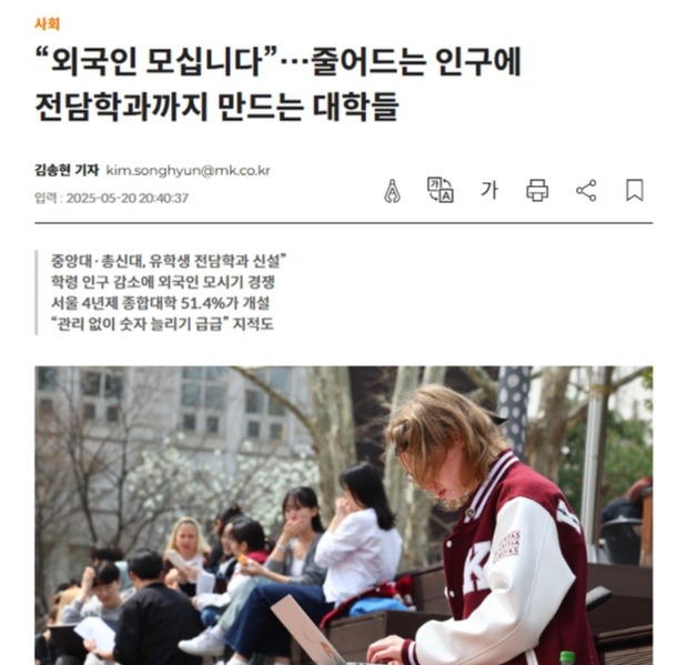 根据韩国每日经济发布的报道:首尔主要大学正快速增设仅招收外国留学生的专门专业。这是大学为增强全球竞争力、应对学龄人口减少而采取的招生策略。但也有观点指出,无节制招收留学生反而可能削弱大学竞争力。据《每...